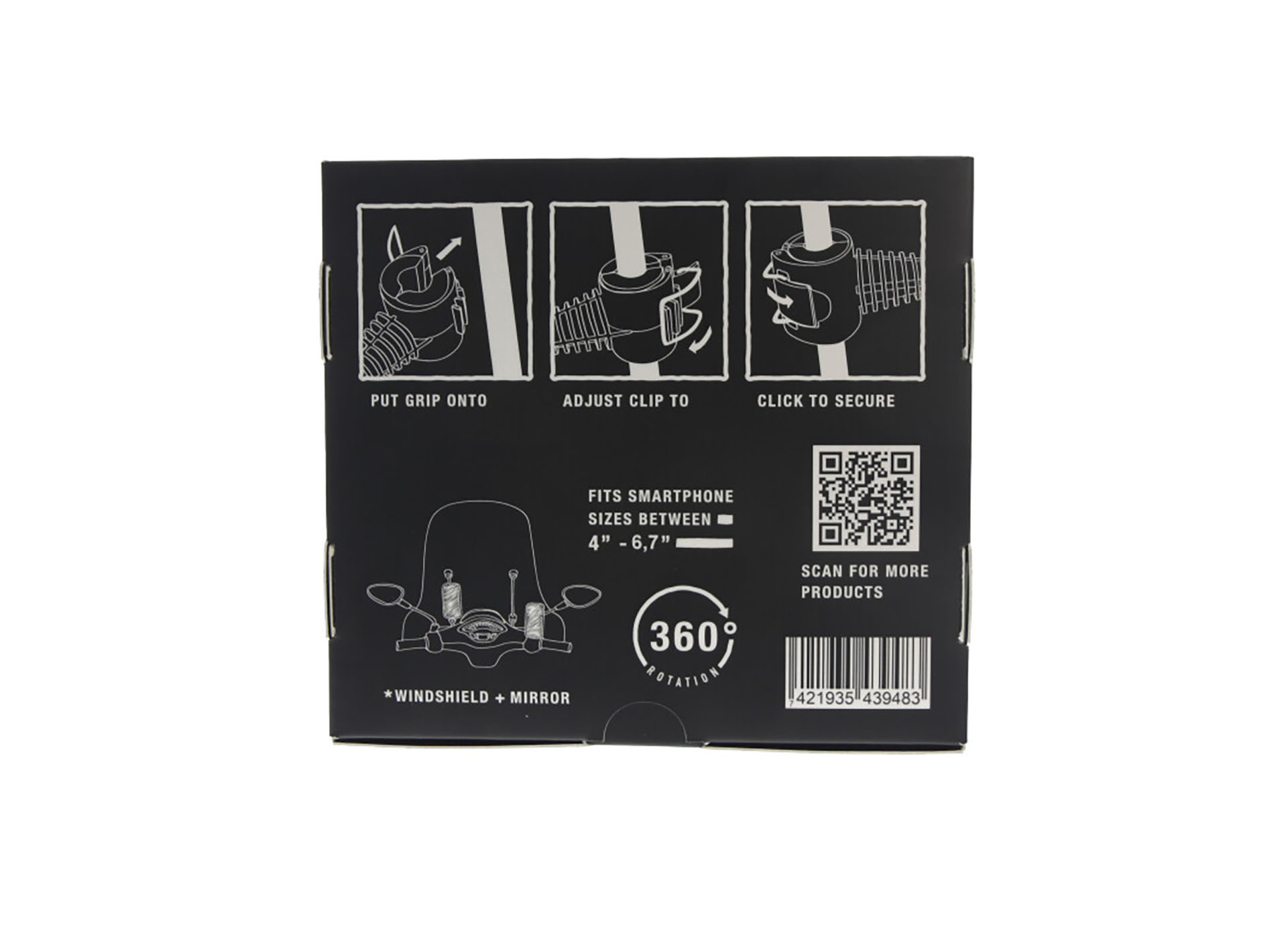 De houder is door middel van een klem makkelijk te bevestigen op het windscherm.